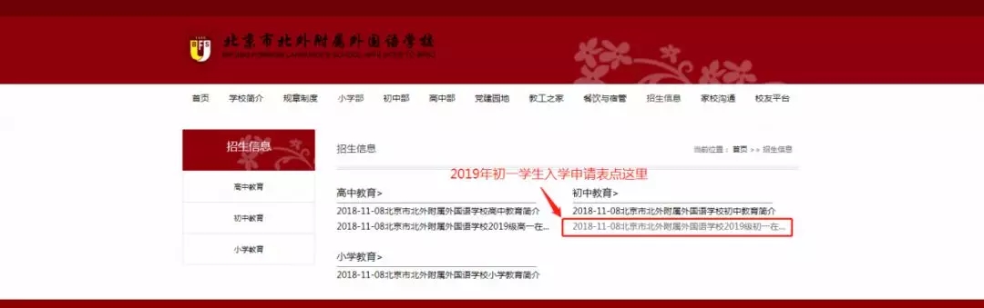 昨天,在北外附校官網(wǎng)的招生信息欄下,發(fā)現(xiàn)了藏得很隱秘的小升初報名公告。