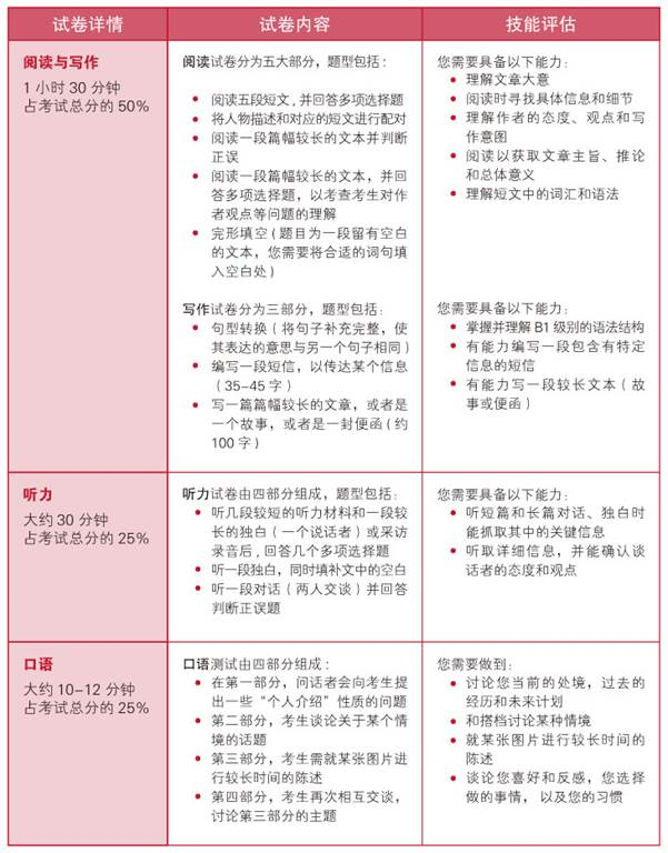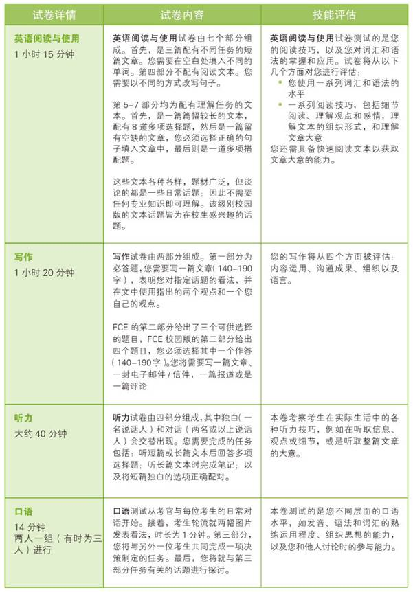 劍橋五級(jí)考試考察內(nèi)容及評(píng)估